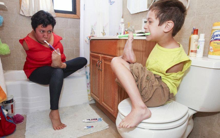 ¡INSPIRADOR! MADRE E HIJO SIN BRAZOS SOBREVIVEN USANDO LOS PIES.